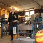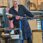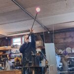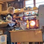 Eine Glasmacherin demonstrierte das Werden einer Glaskugel und einem Trinkglas von der Schmelze bis zum fertigen Objekt.